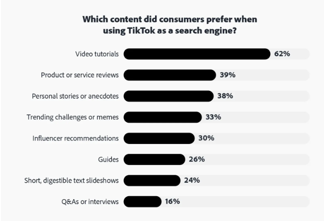 Menurut survey yang dilakukan oleh Adobe, sebanyak 62% orang lebih memilih untuk mencari konten video tutorial di Tiktok loh! Apakah kamu juga termasuk?